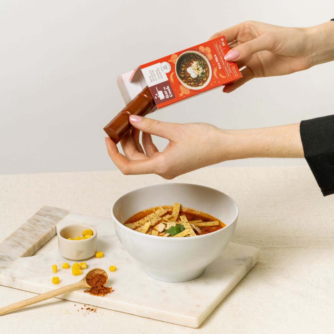 Nos barres de sauce à cuisson instantanée sont une toute nouvelle innovation : des sauces concentrées fabriquées à partir de seulement 3 ingrédients naturels : du beurre de cacao désodorisé, des légumes biologiques et des épices biologiques.