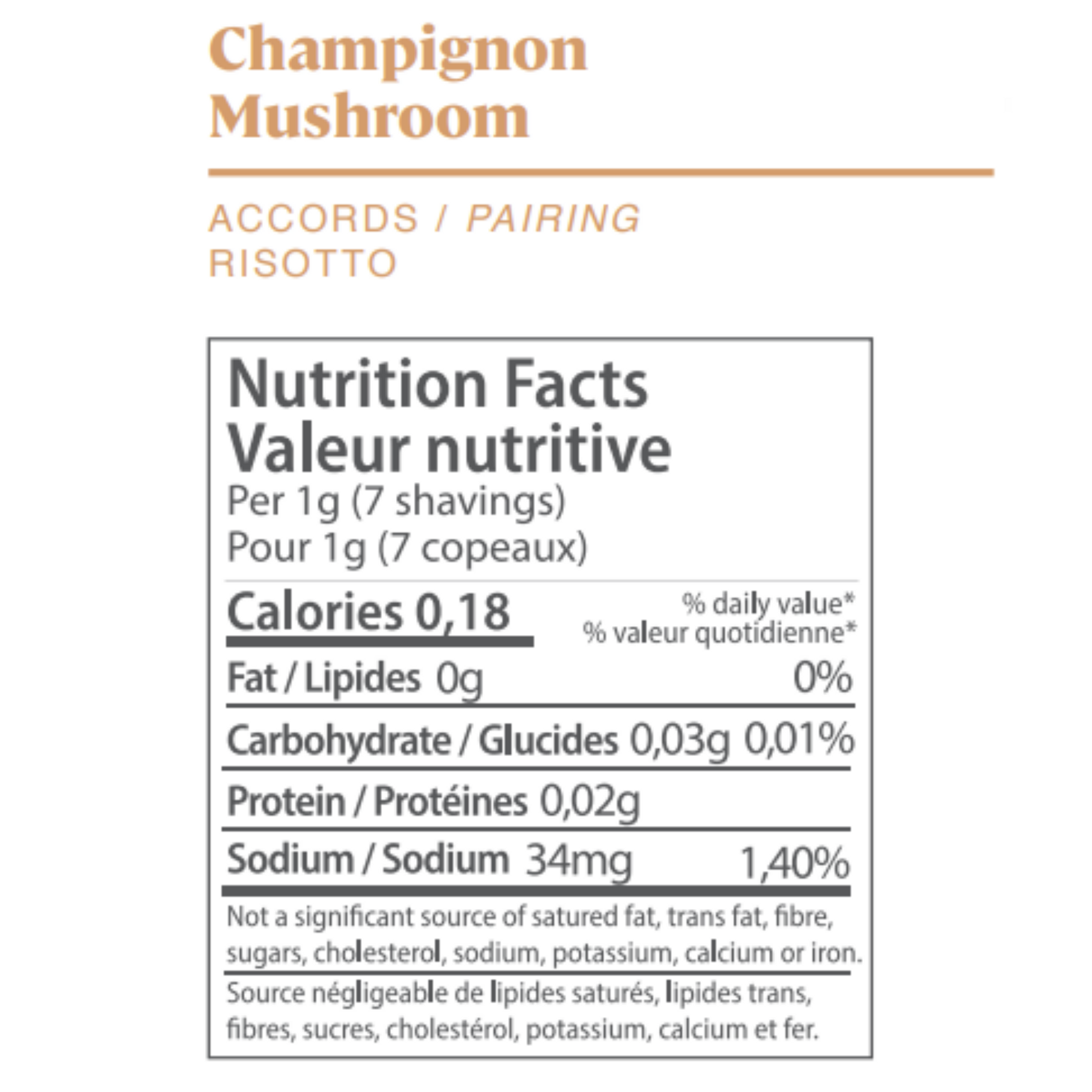 Eau, jus de cèpes, cèpes, arôme naturel de truffe noire, vinaigre de cidre de pomme, tamari sans gluten, arôme naturel de cèpes, sel, agar-agar et gomme de caroube.